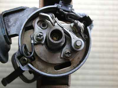 ポイント式ディストロビューターの改造に入る。 ポイントセットを外す。